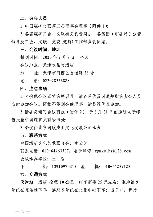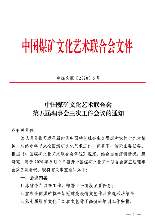 中國煤礦文化藝術聯合會第五屆理事會三次工作會議的通知
