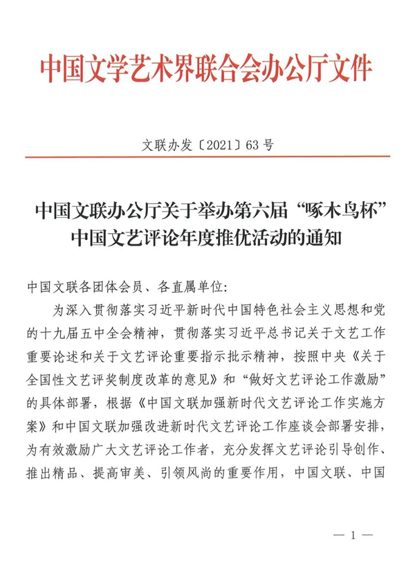中國文聯:第六屆“啄木鳥杯”中國文藝評論年度 推優活動通知