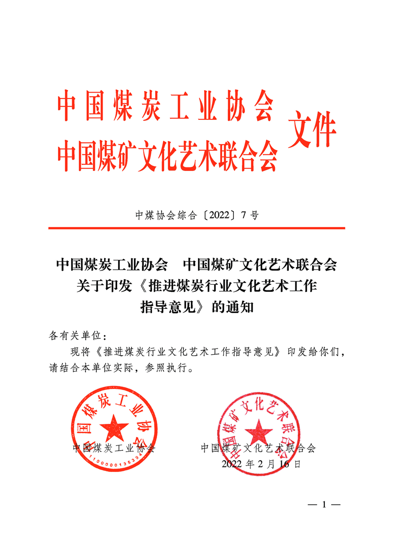 中國煤炭工業協會 中國煤礦文化藝術聯合會 關于印發《推進煤炭行業文化藝術工作指導意見》的通知