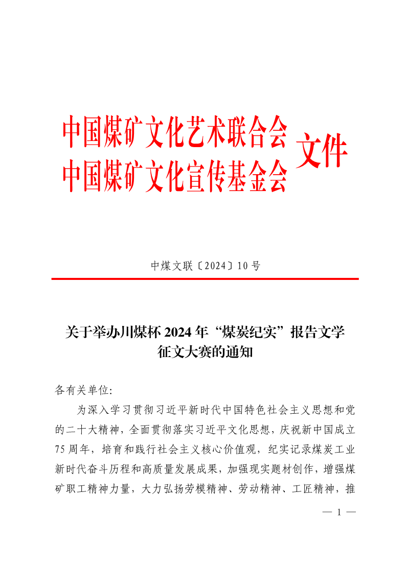 關(guān)于舉辦川煤杯2024年“煤炭紀(jì)實(shí)”報(bào)告文學(xué)征文大賽的通知 來(lái)源:中國(guó)煤礦文聯(lián) 作者: 時(shí)間:2024-06-06 【字體:小 大】 附件:川煤杯2024年“煤炭紀(jì)實(shí)”報(bào)告文學(xué)征文大賽參賽作品登記表掃碼或點(diǎn)擊在線填寫登記表 分享到: 【打印正文】