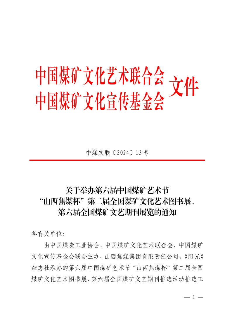 關于舉辦第六屆中國煤礦藝術節(jié)“山西焦煤杯”第二屆全國煤礦文化藝術圖書展、第六屆全國煤礦文藝期刊展覽的通知