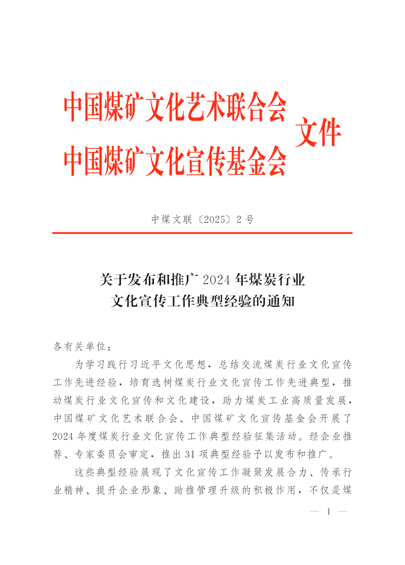 關(guān)于發(fā)布和推廣2024年煤炭行業(yè)文化宣傳工作典型經(jīng)驗(yàn)的通知