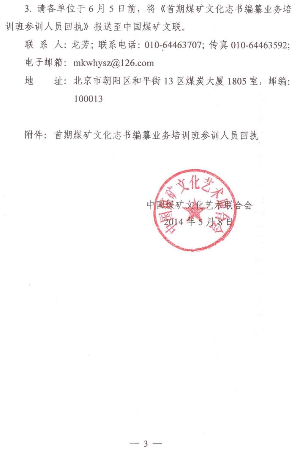 關(guān)于舉辦首期煤礦文化志書編纂業(yè)務(wù)培訓(xùn)班的通知 來源:中國煤礦文化網(wǎng) 作者:煤礦文聯(lián) 時(shí)間:2014-05-19 【字體:小 大】 附件:首期煤礦文化志書編纂業(yè)務(wù)培訓(xùn)班參訓(xùn)人員回執(zhí) 分享到: 【打印正文】