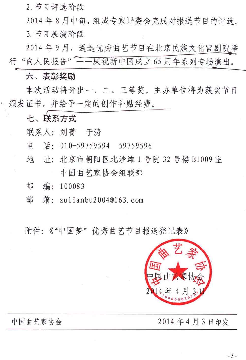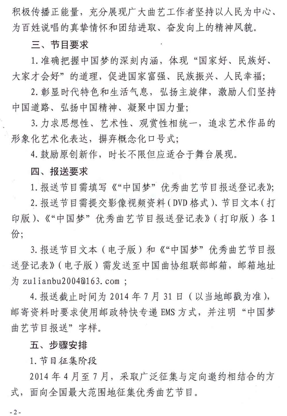 中國曲協《關于開展“中國夢”全國優秀曲藝節目推選展演活動的通知》