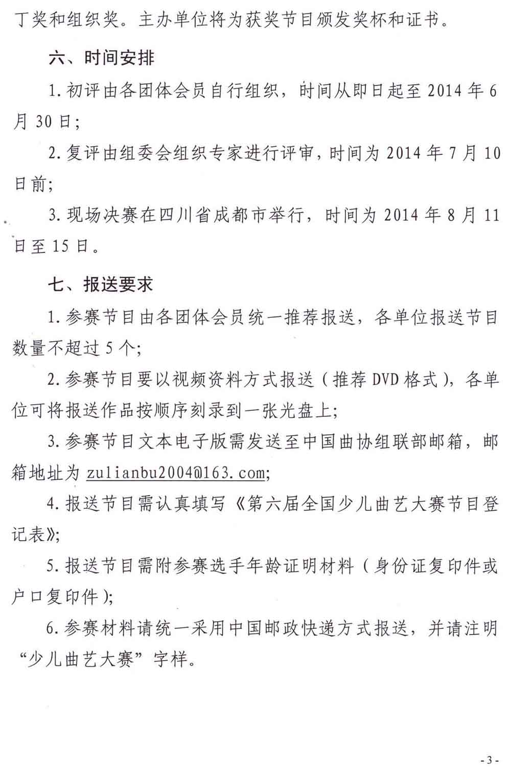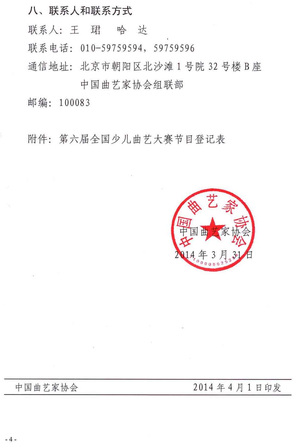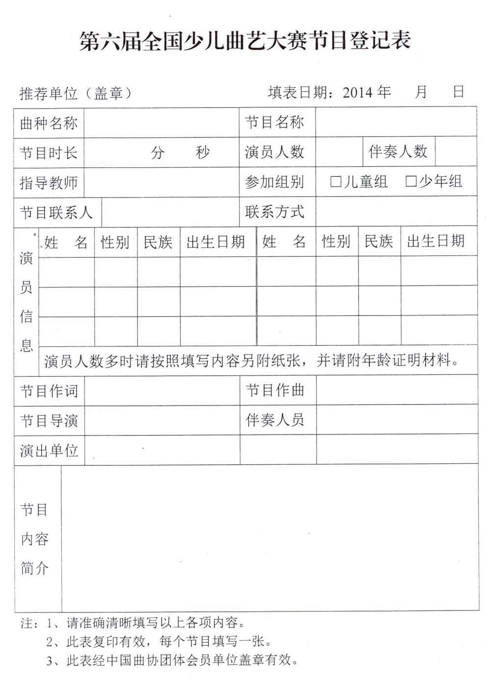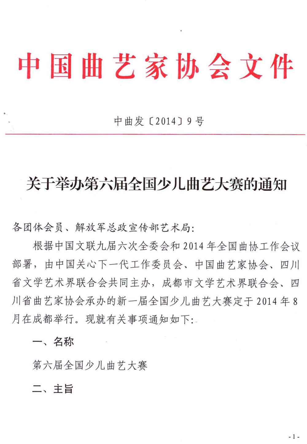 中國曲協《關于舉辦第六屆全國少兒曲藝大賽的通知》
