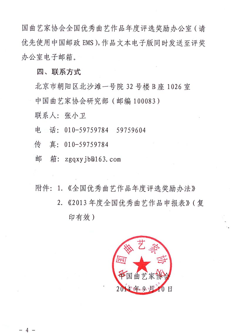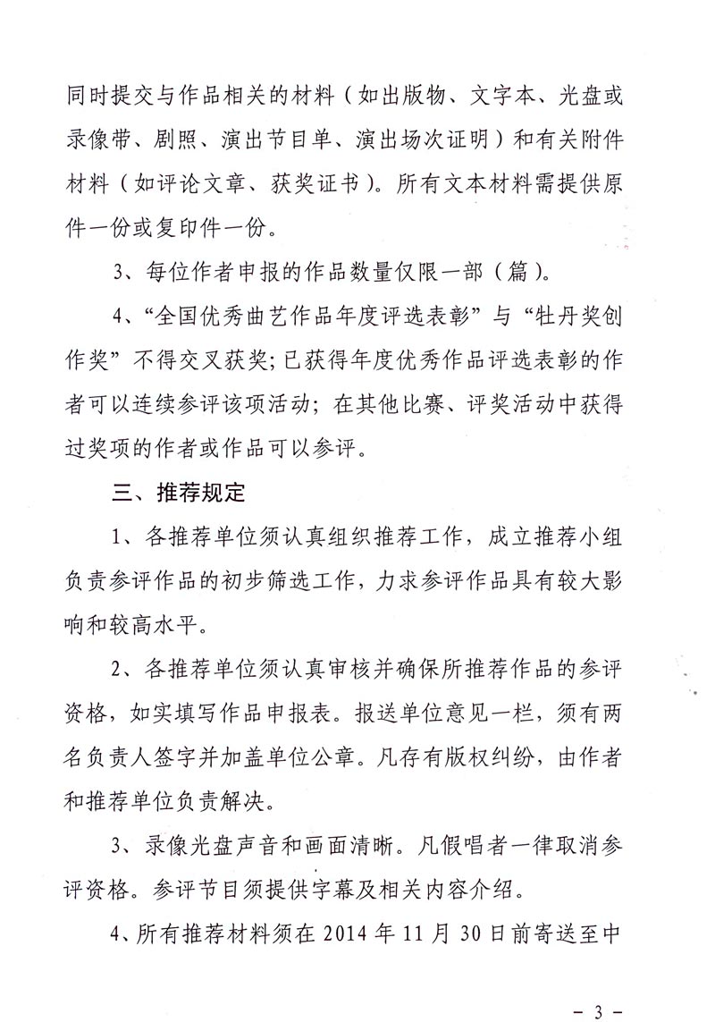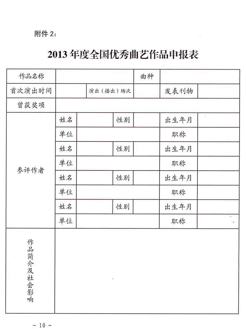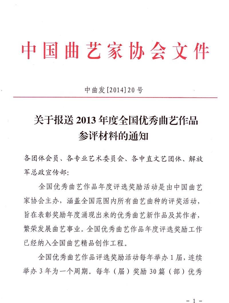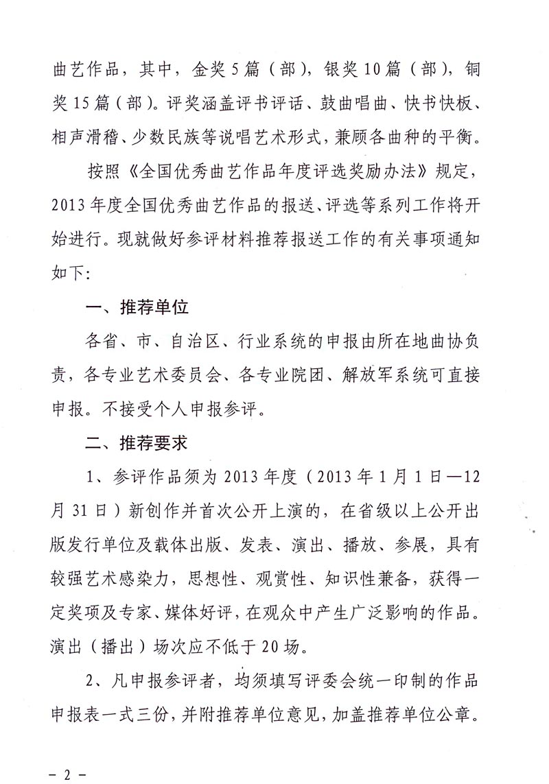 中國曲協:關于報送2013年度全國優秀曲藝作品參評材料的通知