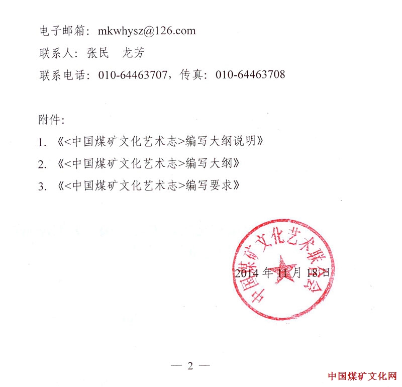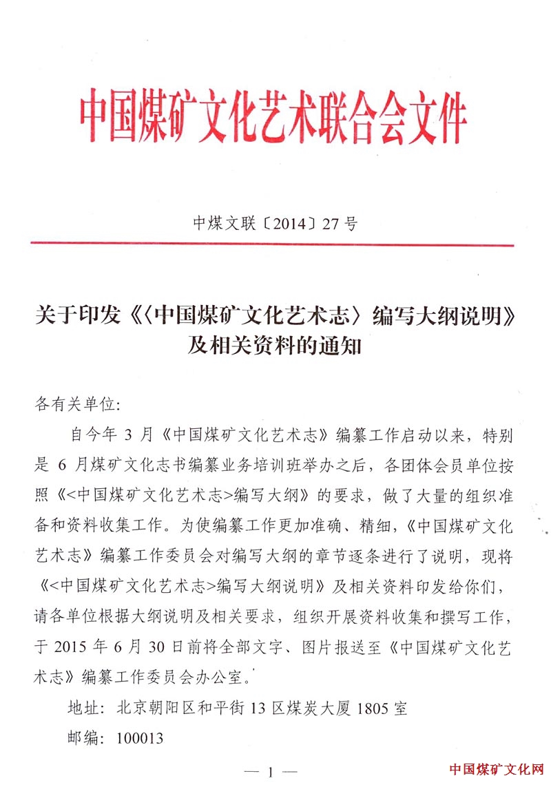 關于印發《〈中國煤礦文化藝術志〉編寫大綱說明》 及相關資料的通知