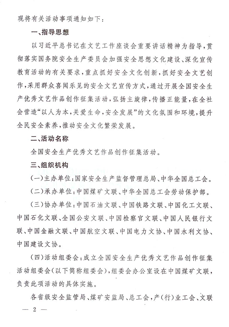 附件:《關(guān)于開展全國安全生產(chǎn)優(yōu)秀文藝作品創(chuàng)作征集活動的通知》