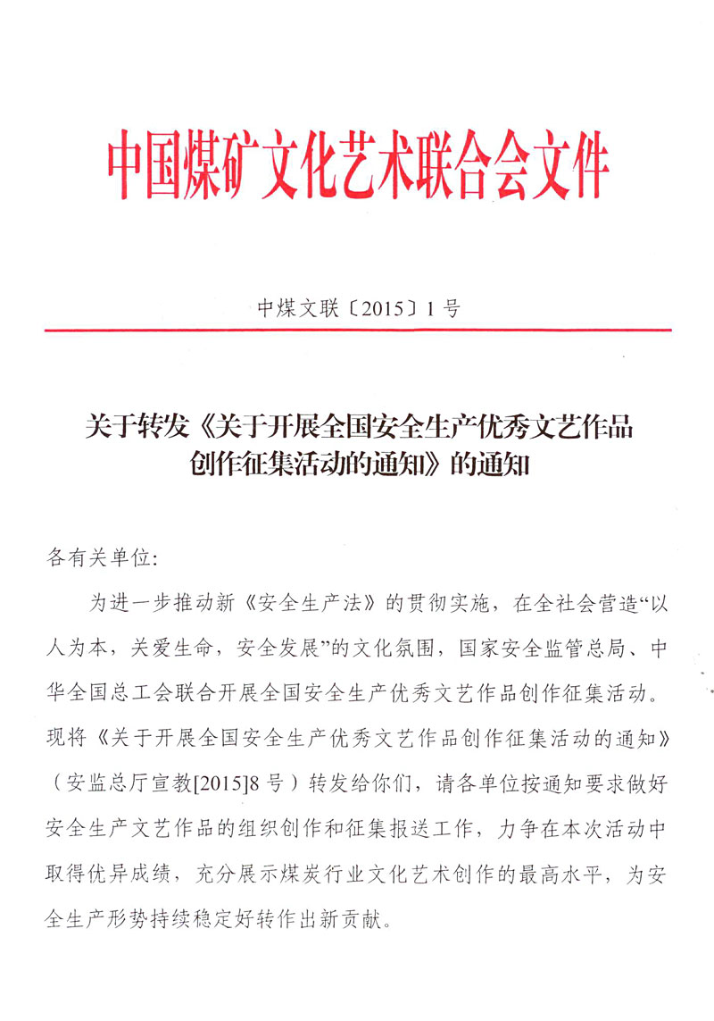 關(guān)于轉(zhuǎn)發(fā)《關(guān)于開展全國安全生產(chǎn)優(yōu)秀文藝作品創(chuàng)作征集活動的通知》的通知