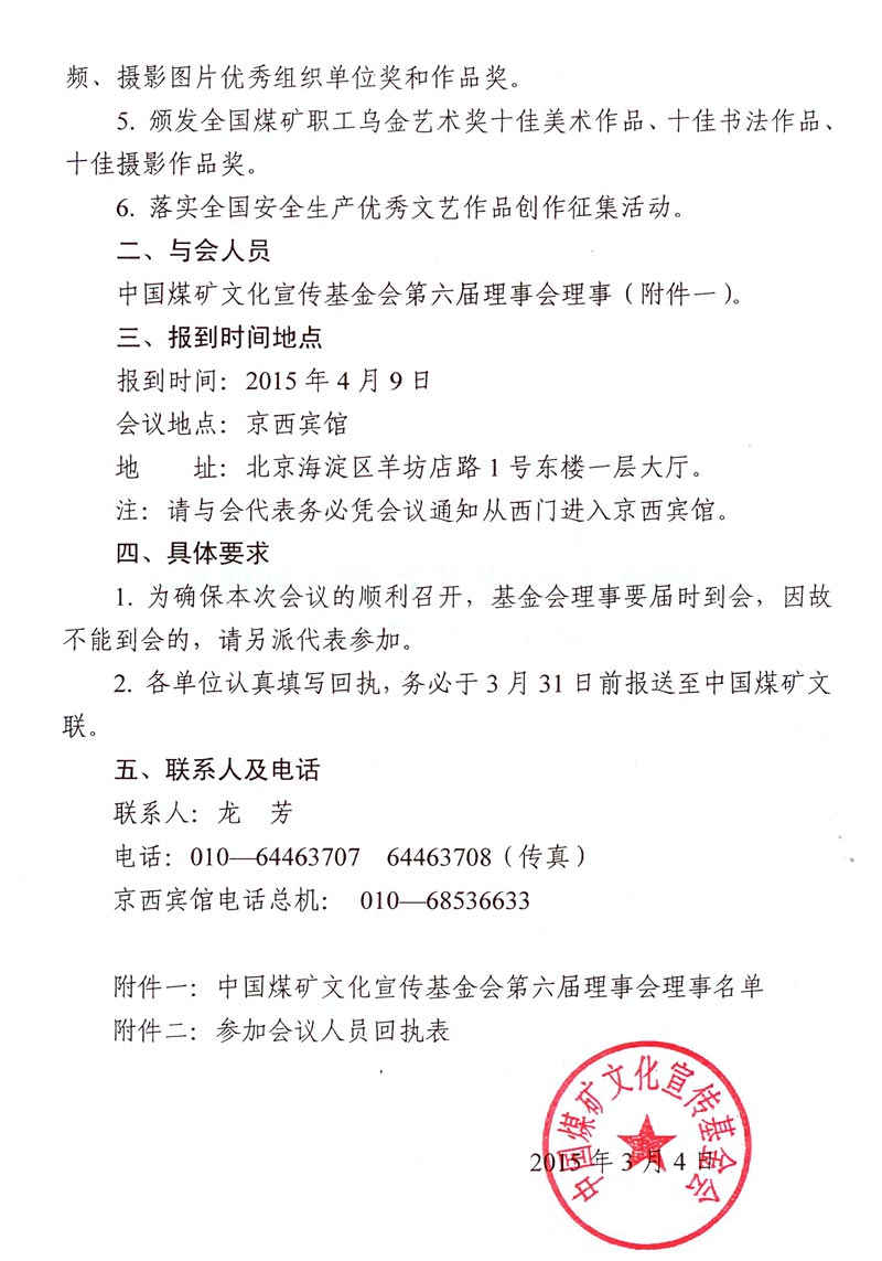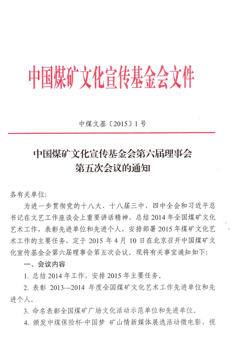 關于召開中國煤礦文化宣傳基金會第六屆理事會第五次會議的通知
