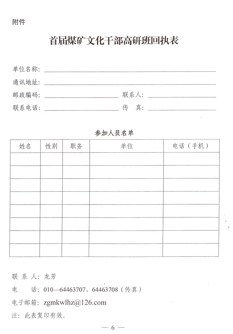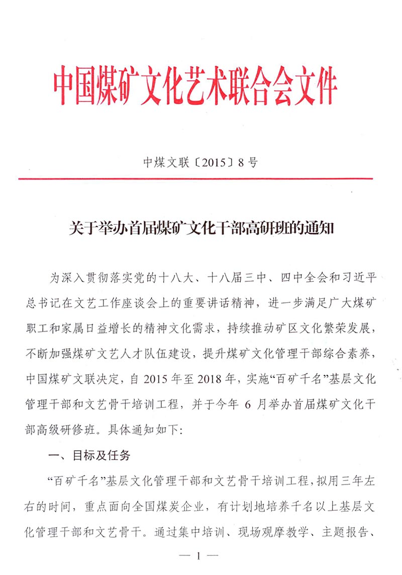 關(guān)于舉辦首屆煤礦文化干部高研班的通知 來(lái)源: 作者: 時(shí)間:2015-05-07 【字體:小 大】 附件:首屆煤礦文化干部高研班回執(zhí)表 智能標(biāo)簽: 煤礦文化 高研班 相關(guān)內(nèi)容 分享到: 【打印正文】