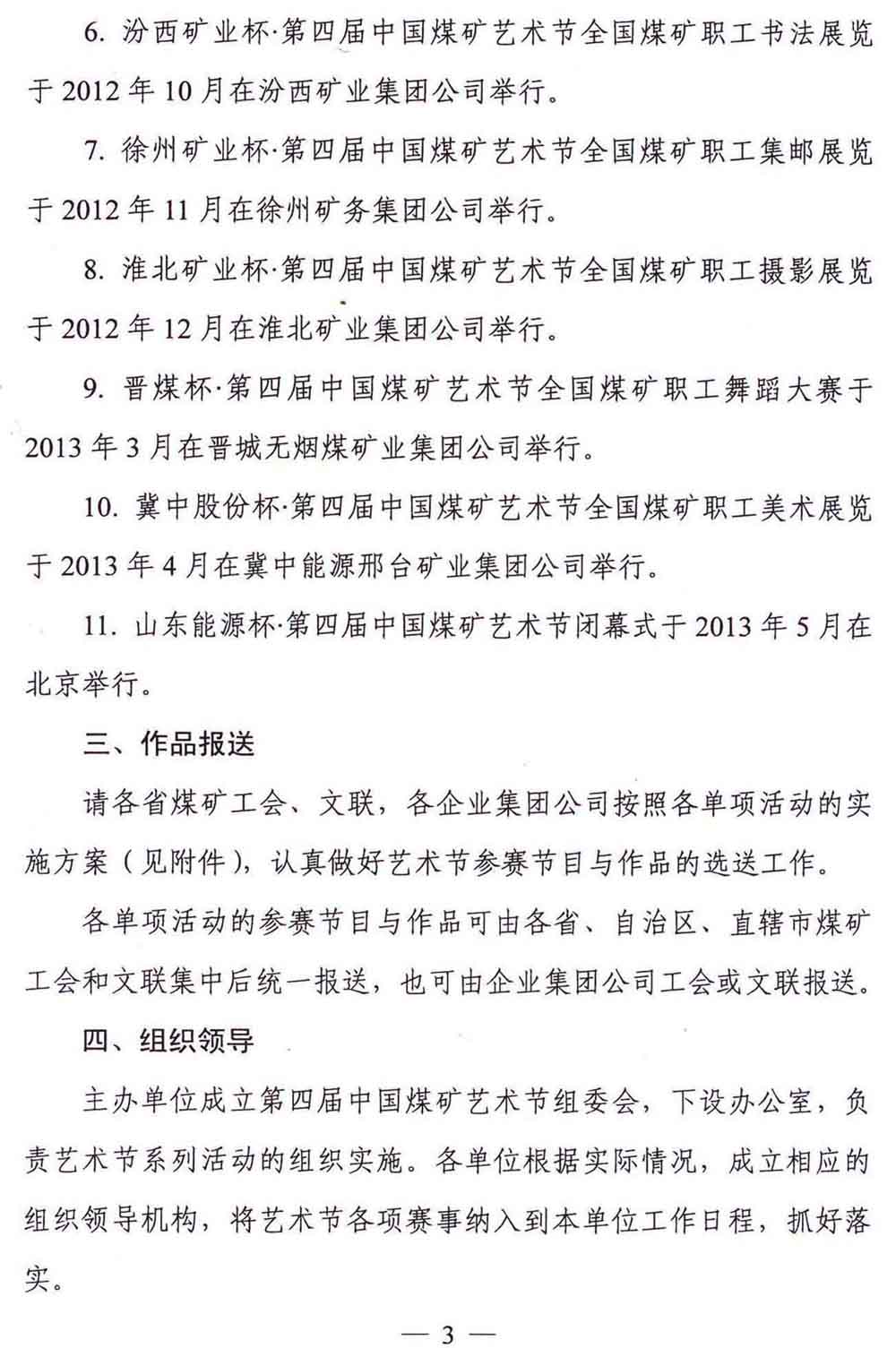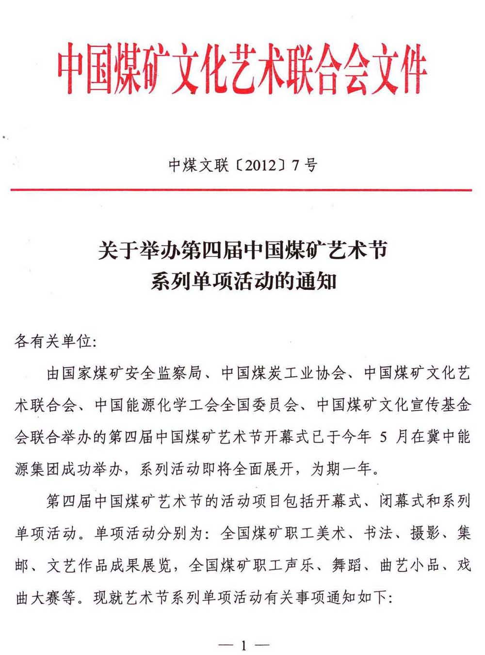 關于舉辦第四屆中國煤礦藝術節系列單項活動的通知 來源:中國煤礦文化網 作者: 時間:2012-06-02 【字體:小 大】 附件:第四屆中國煤礦藝術節組委會名單、系列單項活動方案及報送表 分享到: 【打印正文】