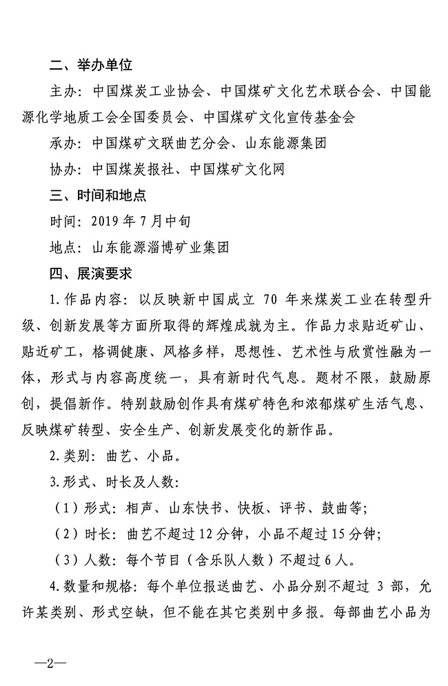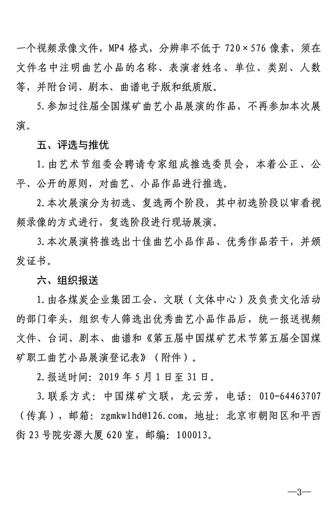 關于舉辦第五屆中國煤礦藝術節第五屆全國煤礦職工曲藝小品展演的通知 來源:中國煤礦文聯 作者: 時間:2019-04-17 【字體:小 大】 附件:關于舉辦第五屆中國煤礦藝術節第五屆全國煤礦職工曲藝小品展演的通知(PDF版)第五屆中國煤礦藝術節第五屆全國煤礦職工曲藝小品展演登記表 智能標簽: 中國煤礦文聯 相關內容 分享到: 【打印正文】