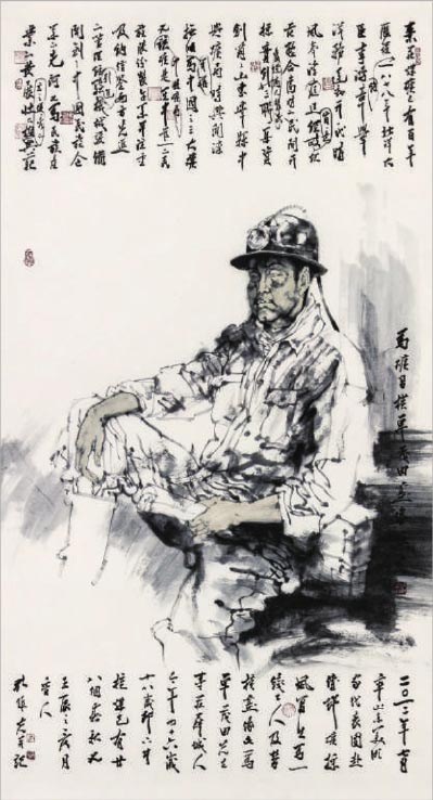 我自大學畢業后30年來少有機會對著人物直接畫寫生。去年3月,為了為農民工塑像全國中國畫展的約稿及5月為清華大學水墨人物畫研修班上課,開始重新拾起水墨人物寫生。回想起當年在學生時代畫模特的情景,那是有些為賦新詞強說愁的感覺,是找了些道具為模特化裝、生硬地擺各種動作。而這兩次為農民工和礦工寫生則是在生活中直接掘取鮮活的人物,表現他們歷盡滄桑的形象及生活瞬間,他們給我的視覺沖擊力與化妝模特是不一樣的。每每下筆都充滿了激情,筆下的人物當然也就生動傳神,落墨時往往想到的不是對比、塑造等已有的技法概念,而是如何用畫筆去貼近那些血肉之軀;用線時想到的也不是勾描那些形體,而是如何捕捉那些生動的瞬間。在用畫筆與那些鮮活形象的對話中常常不自覺地觸發出陣陣激情,同時每一筆下去也往往會遺憾自己的筆拙功差,不能盡如人意地表現出預想的效果,好在形象的生動總能再啟發靈感的筆筆生發,又往往會將錯就錯地再涂抹出另類的、出其不意的效果。