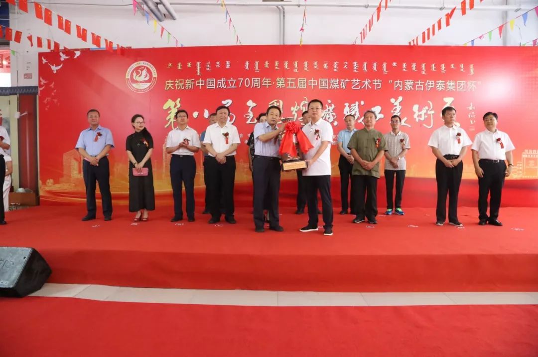 8月10日,由中國煤炭工業(yè)協(xié)會、中國煤礦文化藝術(shù)聯(lián)合會、中國能源化學(xué)地質(zhì)工會全國委員會、中國煤礦文化宣傳基金會聯(lián)合主辦,內(nèi)蒙古伊泰集團(tuán)承辦的“慶祝新中國成立70周年”第五屆中國煤礦藝術(shù)節(jié)“內(nèi)蒙古伊泰集團(tuán)杯”第八屆全國煤礦職工美術(shù)展覽在內(nèi)蒙古鄂爾多斯市隆重開幕。中國煤礦文聯(lián)副主席張強(qiáng)、內(nèi)蒙古自治區(qū)總工會副主席蘇日娜、內(nèi)蒙古伊泰集團(tuán)有限公司黨委委員、董事、副總裁葛耀勇,中國煤礦文聯(lián)秘書長盛軍,內(nèi)蒙古自治區(qū)能源化學(xué)地質(zhì)工會、內(nèi)蒙古自治區(qū)文聯(lián)、鄂爾多斯市總工會和各旗區(qū)總工會等相關(guān)負(fù)責(zé)人及伊泰集團(tuán)有關(guān)領(lǐng)導(dǎo)出席展覽開幕式,來自全國各煤炭企事業(yè)單位的部分參展作者代表及鄂爾多斯地區(qū)美術(shù)愛好者參加展覽開幕式。