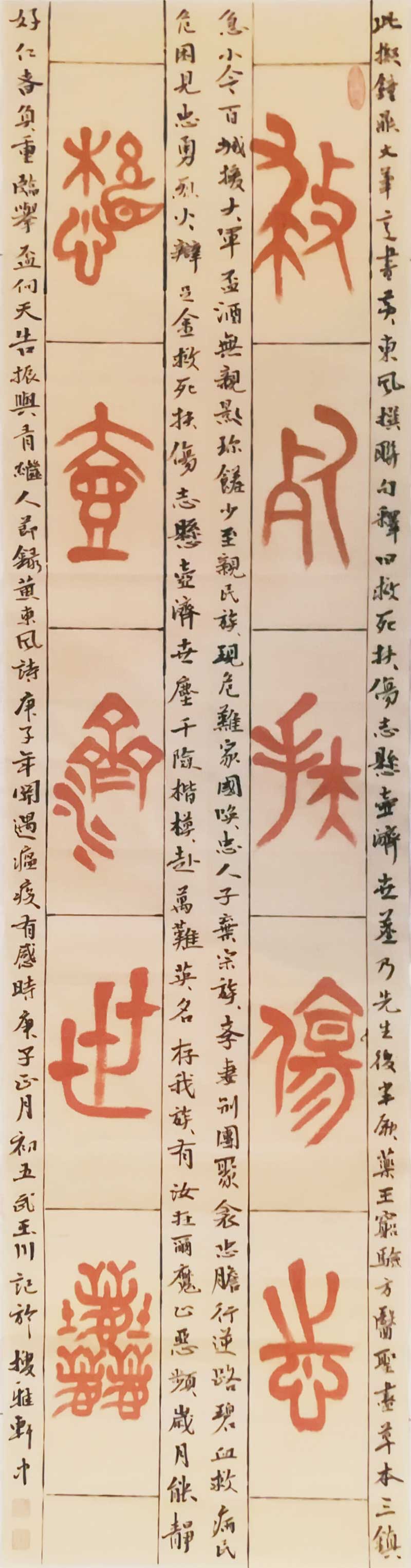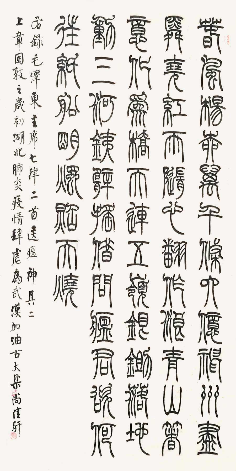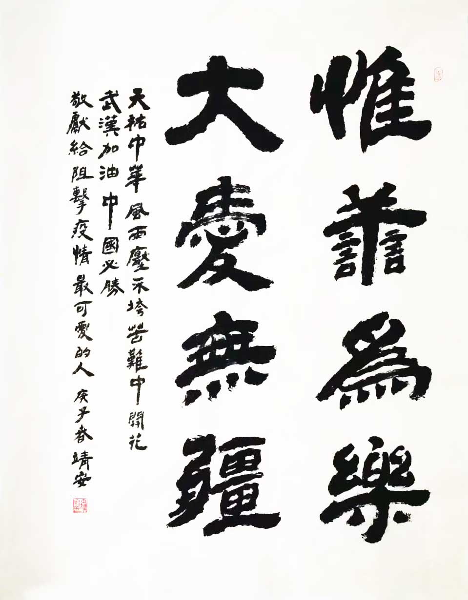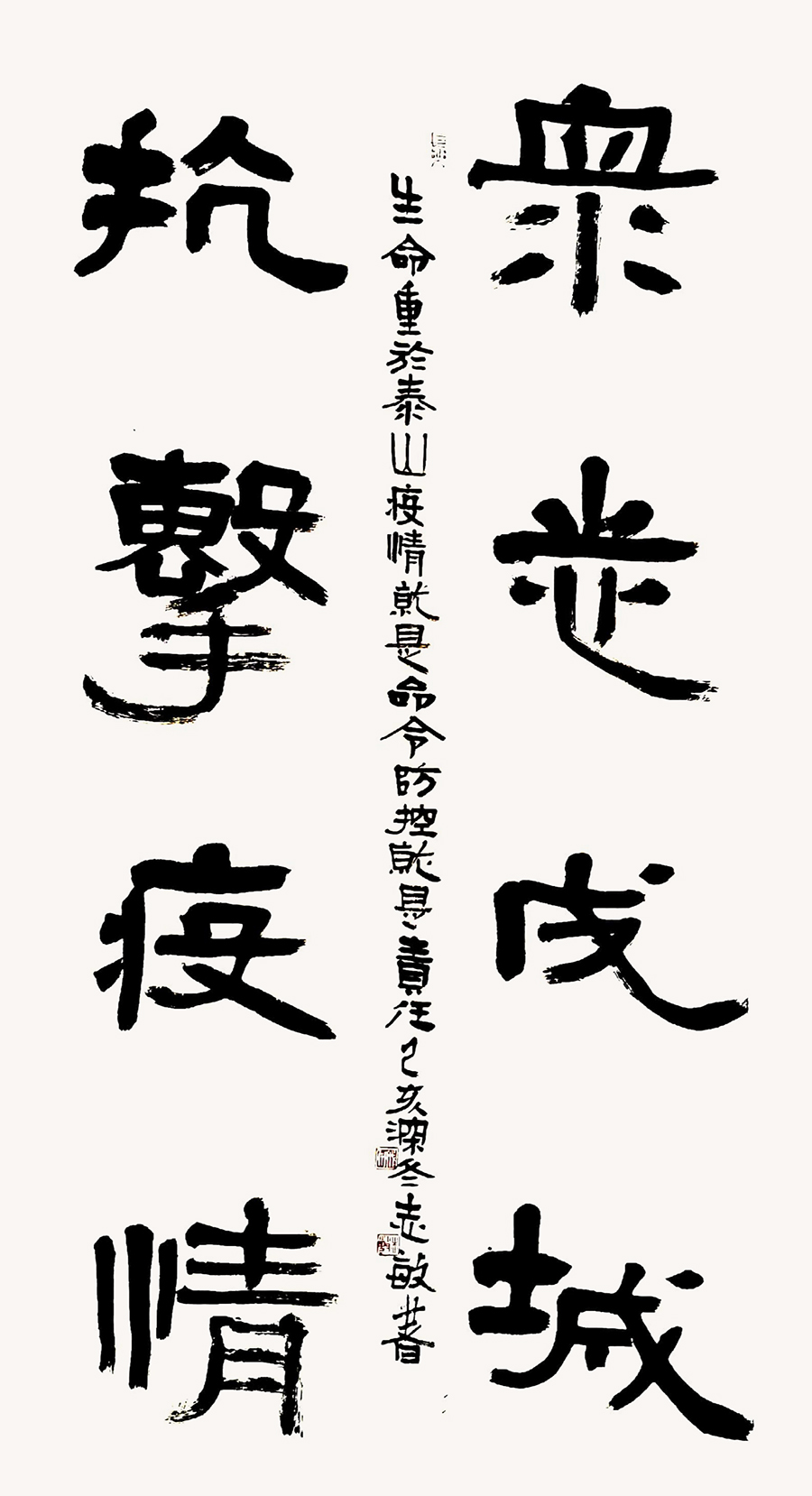 庚子新春,一場來勢洶洶的新型冠狀病毒感染的肺炎疫情在全國蔓延。面對疫情,習近平總書記作出重要指示,要求“廣泛動員群眾、組織群眾、凝聚群眾。緊緊依靠人民群眾堅決打贏疫情防控阻擊戰”。在武漢、在全國各地,無數奔赴在疫情一線的工作人員同舟共濟、眾志成城,冒著各種風險堅守崗位,投身于這場必須打贏的疫情防控狙擊戰。在這場抗擊疫情的戰斗中,文藝工作者不能缺席。中國煤礦文聯迅速組織全行業文藝工作者積極行動起來,為堅決遏制疫情蔓延勢頭、打贏疫情防控阻擊戰鼓與呼,創作出一大批各種形式的文藝作品,鼓舞全民士氣,致敬白衣天使,慰問病患同胞,傳遞人間真情,弘揚社會正能量。中國煤礦書法家協會迅速行動起來,組織煤礦書法家,用心研墨,以愛為紙,將自己的創作激情,化作了對疫情的關切之情,兩天時間創作了數百件鼓舞士氣,振奮精神的書法、篆刻作品。點畫間傳達了550萬煤礦工人聲援武漢,抗擊疫情的信心和決心,表達了對江城武漢的祈福、對偉大祖國的祝愿。