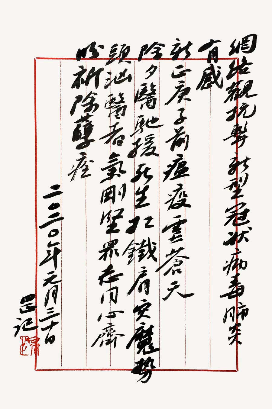 本次“生命重于泰山——中國煤礦書法家聲援武漢、抗擊疫情網絡書法展”就是從這些作品中遴選出來的佳作精品,以此獻給所有奮戰在抗擊新型冠狀病毒感染的肺炎疫情第一線的勇士們。最偉大的力量,莫過于人心的力量,讓我們一同團結起來,打贏這場疫情防控的硬仗。