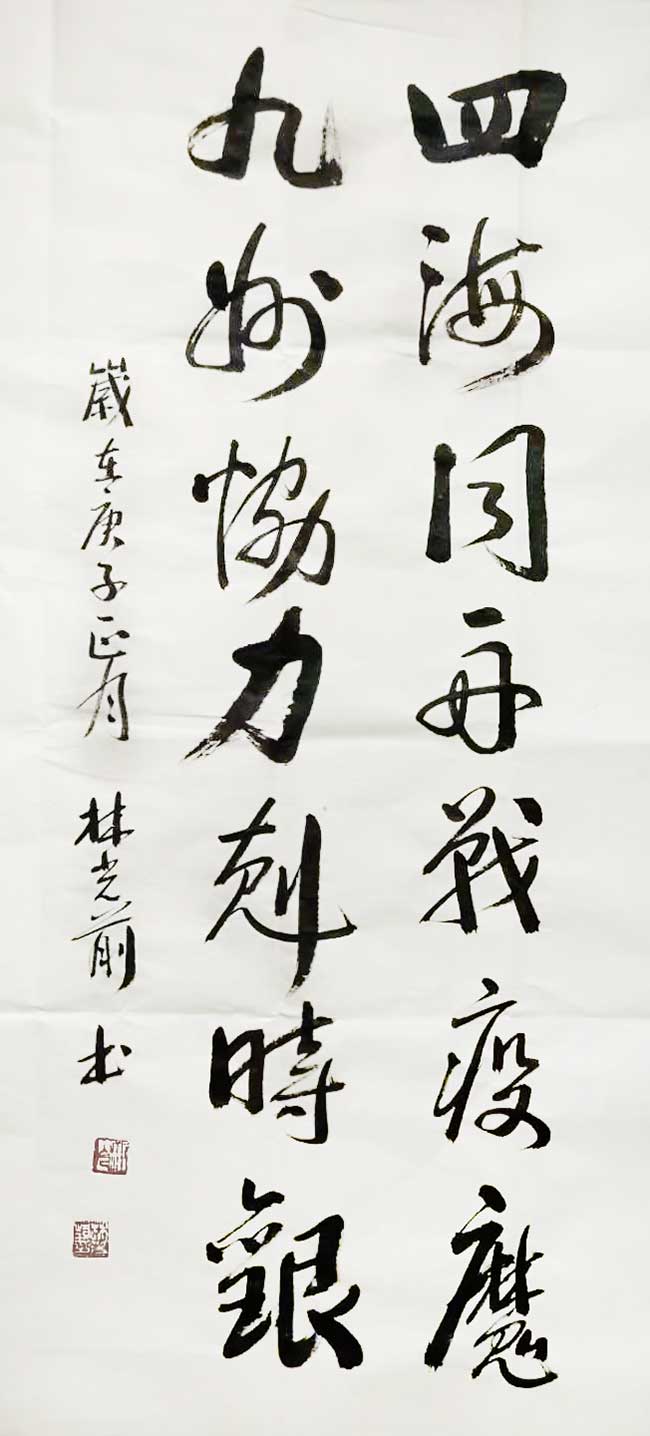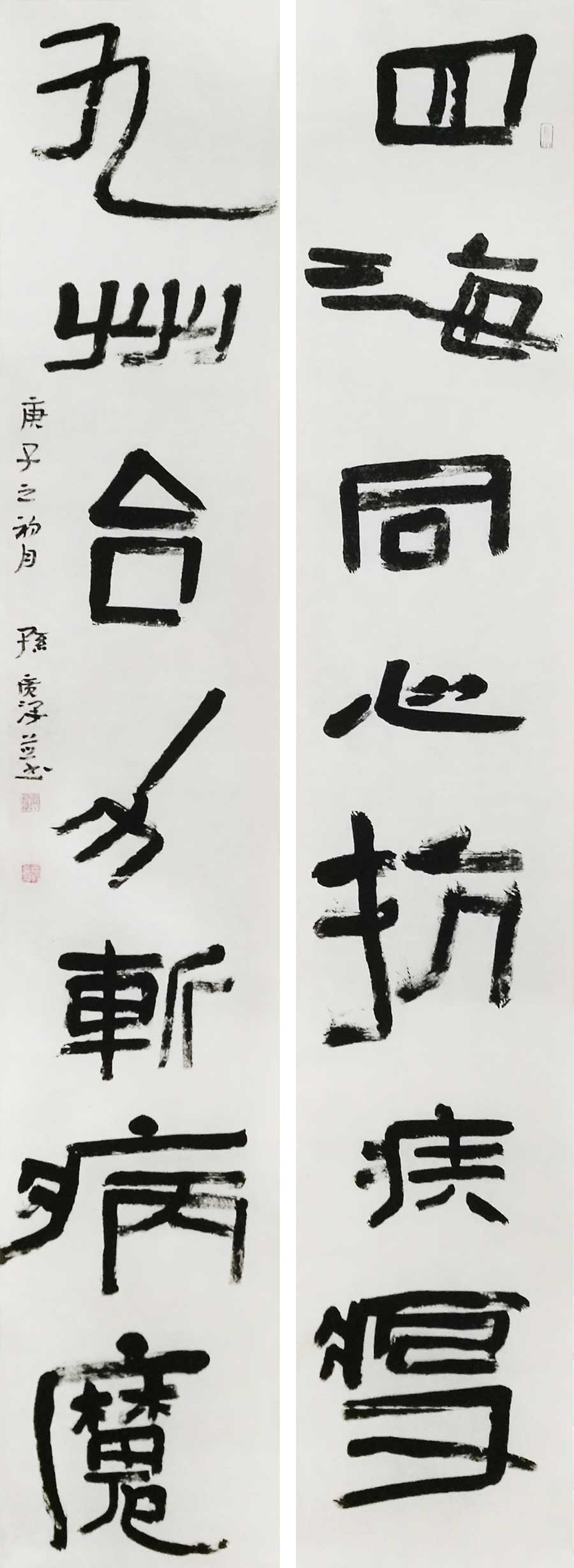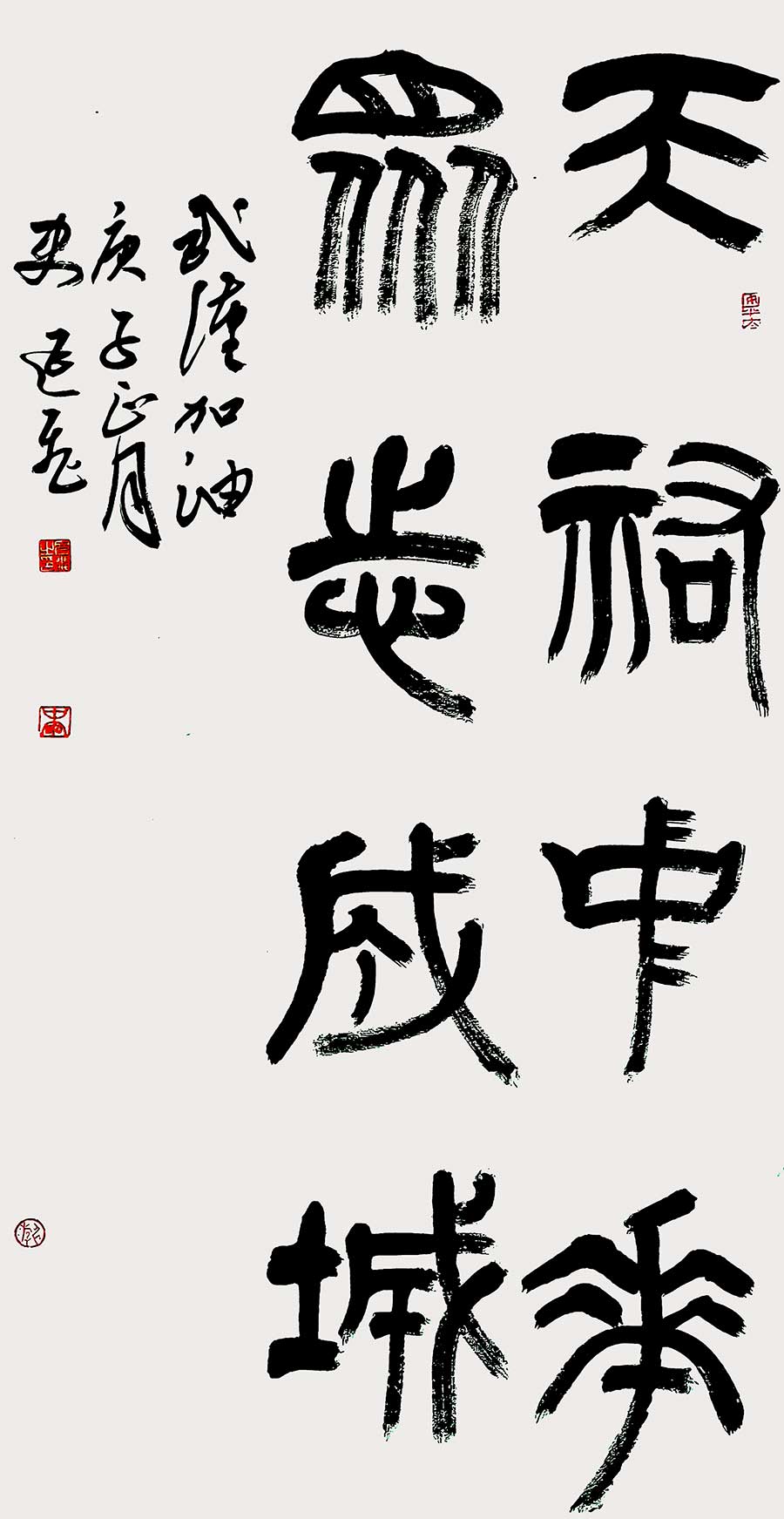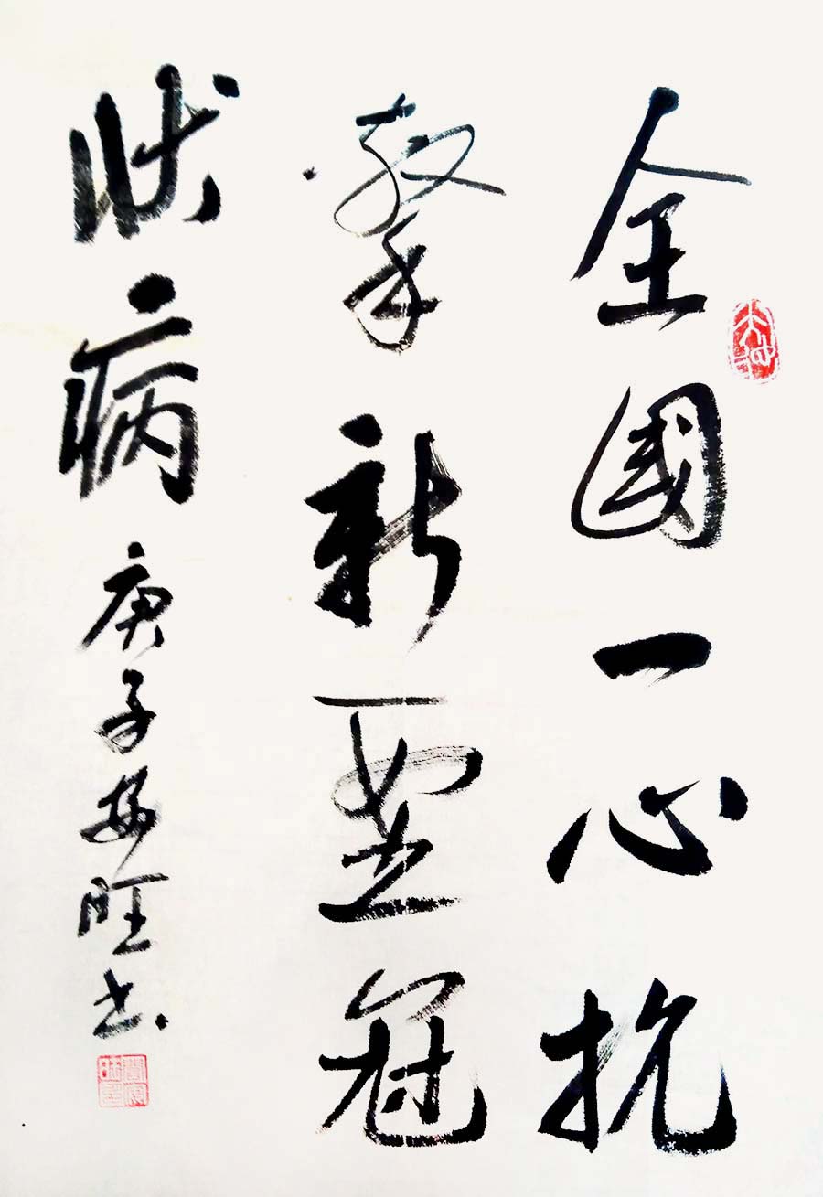 庚子新春,一場來勢洶洶的新型冠狀病毒感染的肺炎疫情在全國蔓延。面對疫情,習(xí)近平總書記作出重要指示,要求“廣泛動員群眾、組織群眾、凝聚群眾。緊緊依靠人民群眾堅決打贏疫情防控阻擊戰(zhàn)”。在武漢、在全國各地,無數(shù)奔赴在疫情一線的工作人員同舟共濟(jì)、眾志成城,冒著各種風(fēng)險堅守崗位,投身于這場必須打贏的疫情防控狙擊戰(zhàn)。在這場抗擊疫情的戰(zhàn)斗中,文藝工作者不能缺席。中國煤礦文聯(lián)迅速組織全行業(yè)文藝工作者積極行動起來,為堅決遏制疫情蔓延勢頭、打贏疫情防控阻擊戰(zhàn)鼓與呼,創(chuàng)作出一大批各種形式的文藝作品,鼓舞全民士氣,致敬白衣天使,慰問病患同胞,傳遞人間真情,弘揚社會正能量。中國煤礦書法家協(xié)會迅速行動起來,組織煤礦書法家,用心研墨,以愛為紙,將自己的創(chuàng)作激情,化作了對疫情的關(guān)切之情,兩天時間創(chuàng)作了數(shù)百件鼓舞士氣,振奮精神的書法、篆刻作品。點畫間傳達(dá)了550萬煤礦工人聲援武漢,抗擊疫情的信心和決心,表達(dá)了對江城武漢的祈福、對偉大祖國的祝愿。