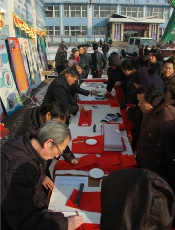 藝術為礦工服務,開灤藝術團春節前后,分別深入到唐山礦、興隆公司等基層單位進行兩會和安全宣傳演出的同時,開灤書畫院的礦山書法家們,也用送春聯的形式把新春的問候帶給每一位礦工。3天時間里,他們頂風冒雪,連續到趙各莊礦、林西礦、唐山礦、荊各莊礦等基層單位,在井口旁,在燈房里,揮毫潑墨,把濃濃地祝福送給廣大員工和家屬。