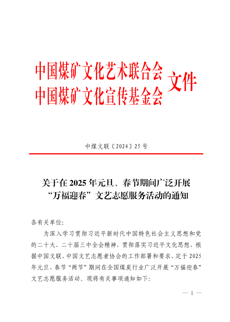 關(guān)于在2025年元旦、春節(jié)期間廣泛開展“萬福迎春”文藝志愿服務活動的通知