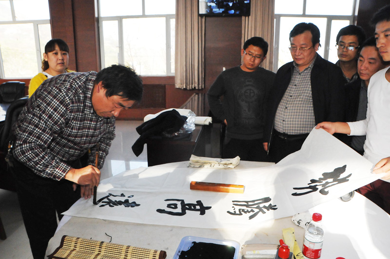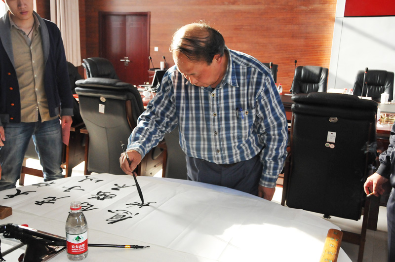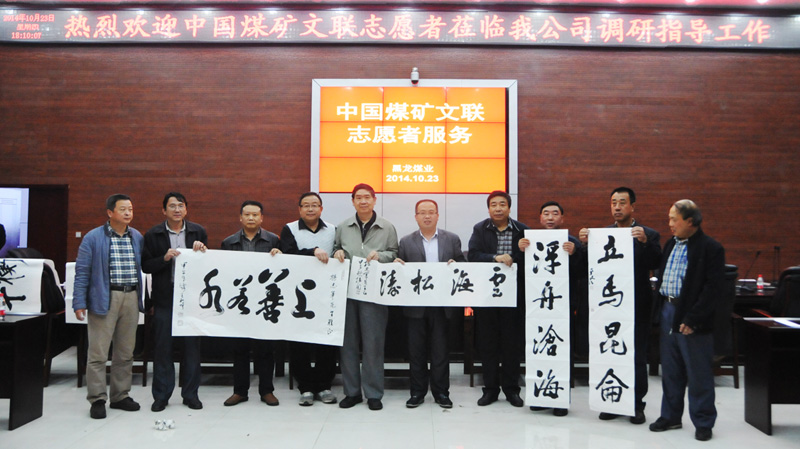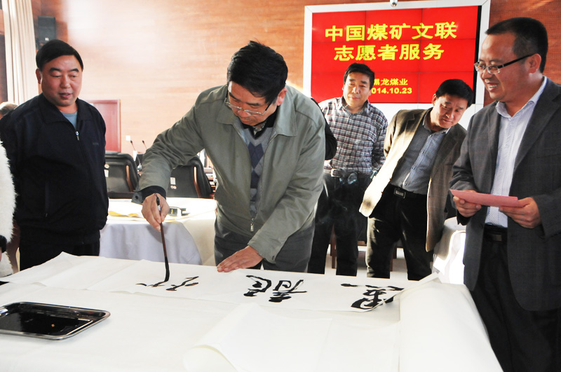 當天下午,在該公司會議室,中國書畫藝術家協會會員,山西書法家協會會員,山西省產業(企業)文聯副主席,中國煤炭書法家協會副主席,中國煤炭文聯理事,中國煤炭作協理事,潞安集團文聯主席、書協主席閆接囤一行,首先代表中國煤礦文聯志愿者向該公司贈送了文學、書畫等書籍,并同中國煤礦書法家協會理事、山西省書法家協會會員、潞安集團書協副主席王和岐、潞安集團書協副主席米平澤等著名書法家,當場在該公司會議室揮毫潑墨,將100余幅遒勁有力、寓意深遠的書法作品贈送給該公司廣大干部職工,不僅為該公司廣大干部職工帶來了豐富的文化食量,也充分表達了中國煤礦文聯和集團公司對整合礦井的親切關懷,把溫暖送到了整合礦井員工的心坎上,傳遞的能量觸手可及。黑龍煤業干部職工在得到了書法藝術熏陶,感受到了書法藝術的無盡魅力后,倍受鼓舞,干勁倍增,大家紛紛表示,要此為契機,再接再厲,在黑龍煤業的建設發展中,立足本職、扎實奉獻,再創佳績,再立新功,為潞安三地一新建設做出應有的貢獻。