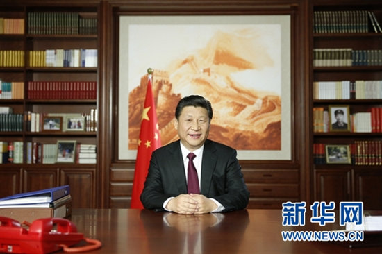 新年前夕,國家主席習近平通過中國國際廣播電臺、中央人民廣播電臺、中央電視臺發表二〇一五年新年賀詞。 新華社記者 鞠鵬攝